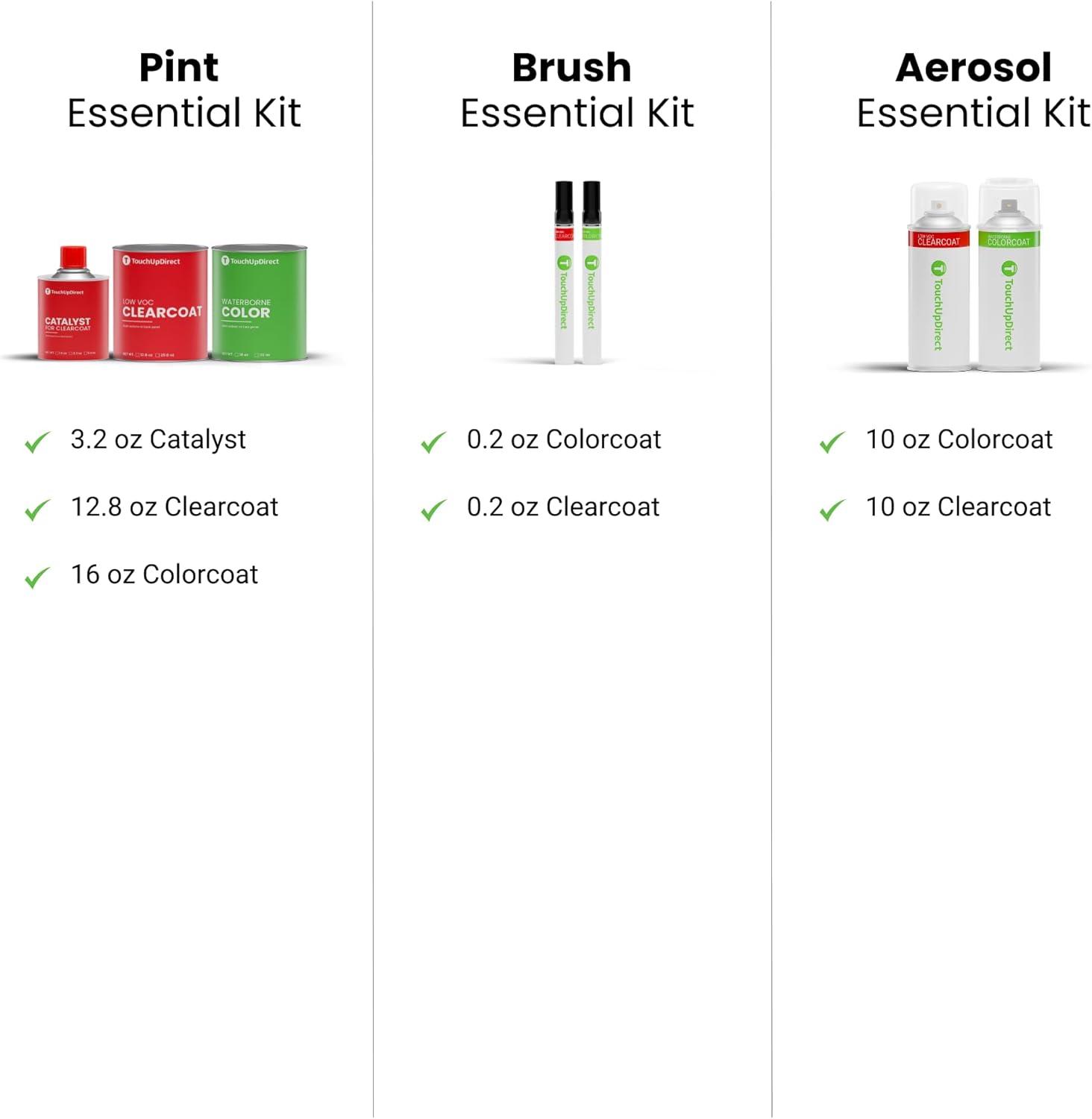 The Brush essential scratch repair kit includes: one Colorcoat touch up brush perfectly matched to your vehicle's color and one Clearcoat touch up brush for the final protective finish. The Brush provides sufficient touch up paint to cover a minimum of 10 square inches. This touch up paint brush is prepared for immediate use.
