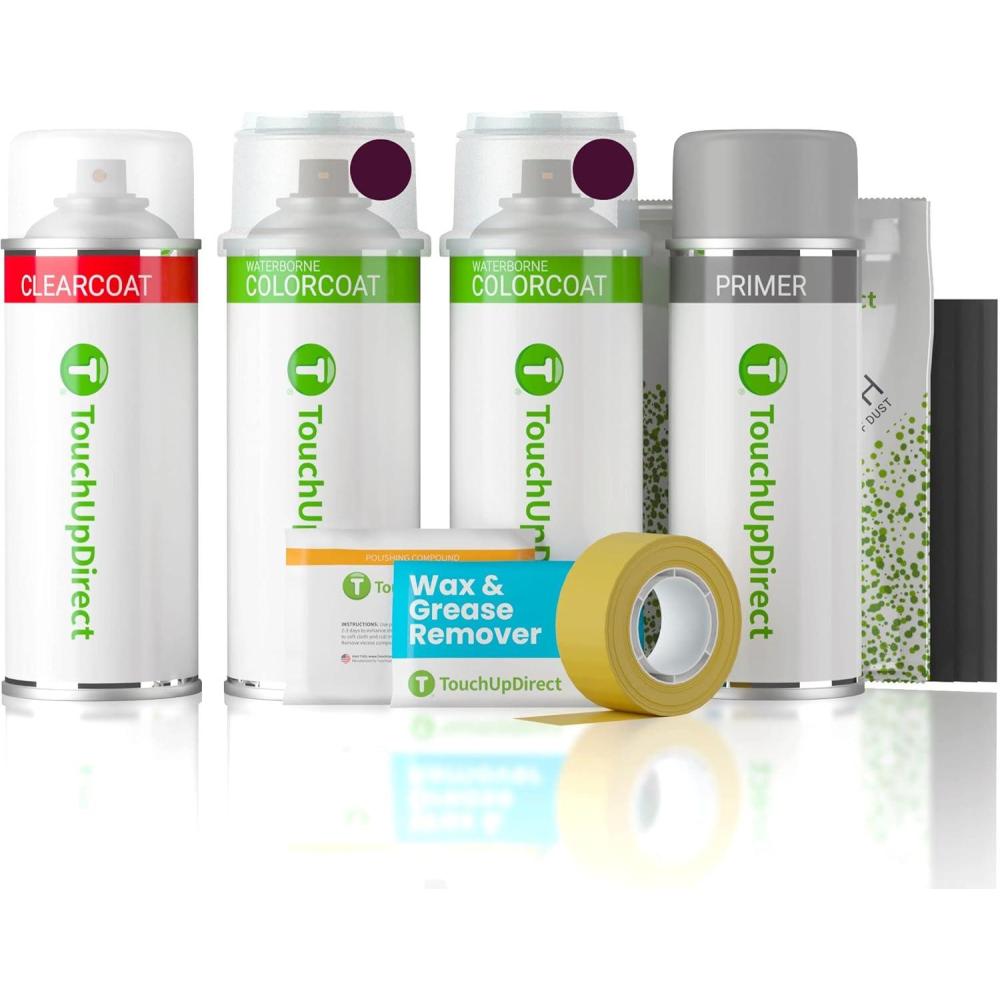 Paint coverage: 3-4 cans for hoods/trunk lids, 2-3 cans for bumpers, 1 can for mirrors. Kit Includes: Primer, Colorcoat and Clearcoat Aerosol spray can, Wax & Grease Remover Wipe, Tack Cloth, Assorted Sandpaper, Polishing Compound and Masking Tape.